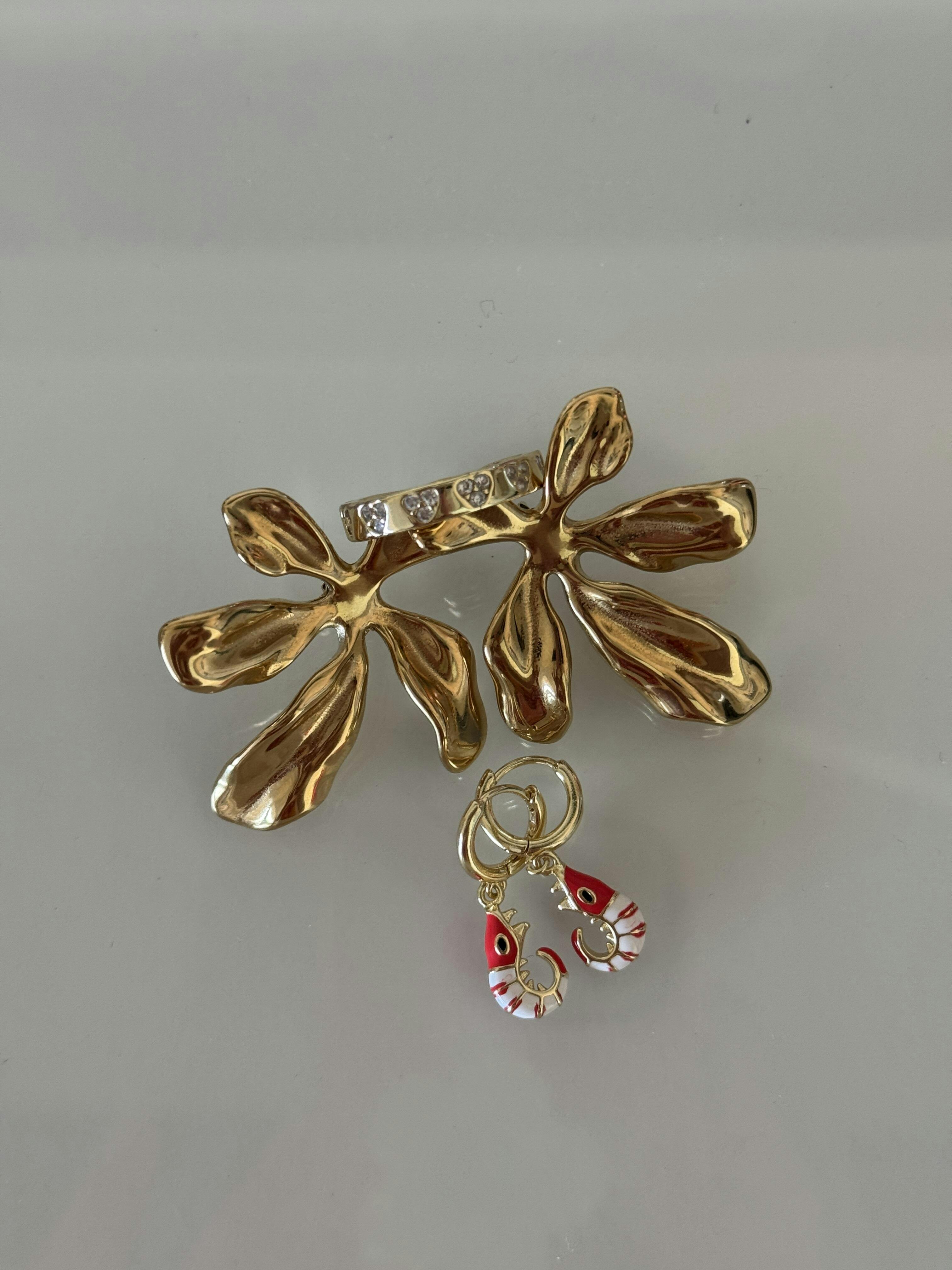Big statement flower earrings in gold.